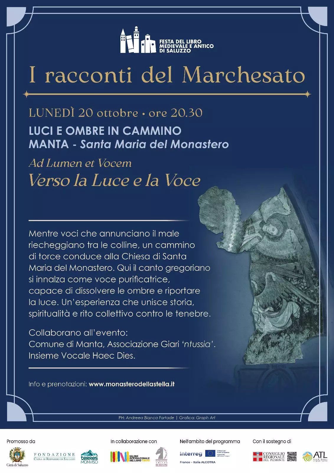 Descrizione Ad Lumen et Vocem - Verso la luce e la Voce Santa Maria del Monastero lunedì 20 ottobre 2025 alle ore 20,30 Info e prenotazioni: www.monasterodellastella.it