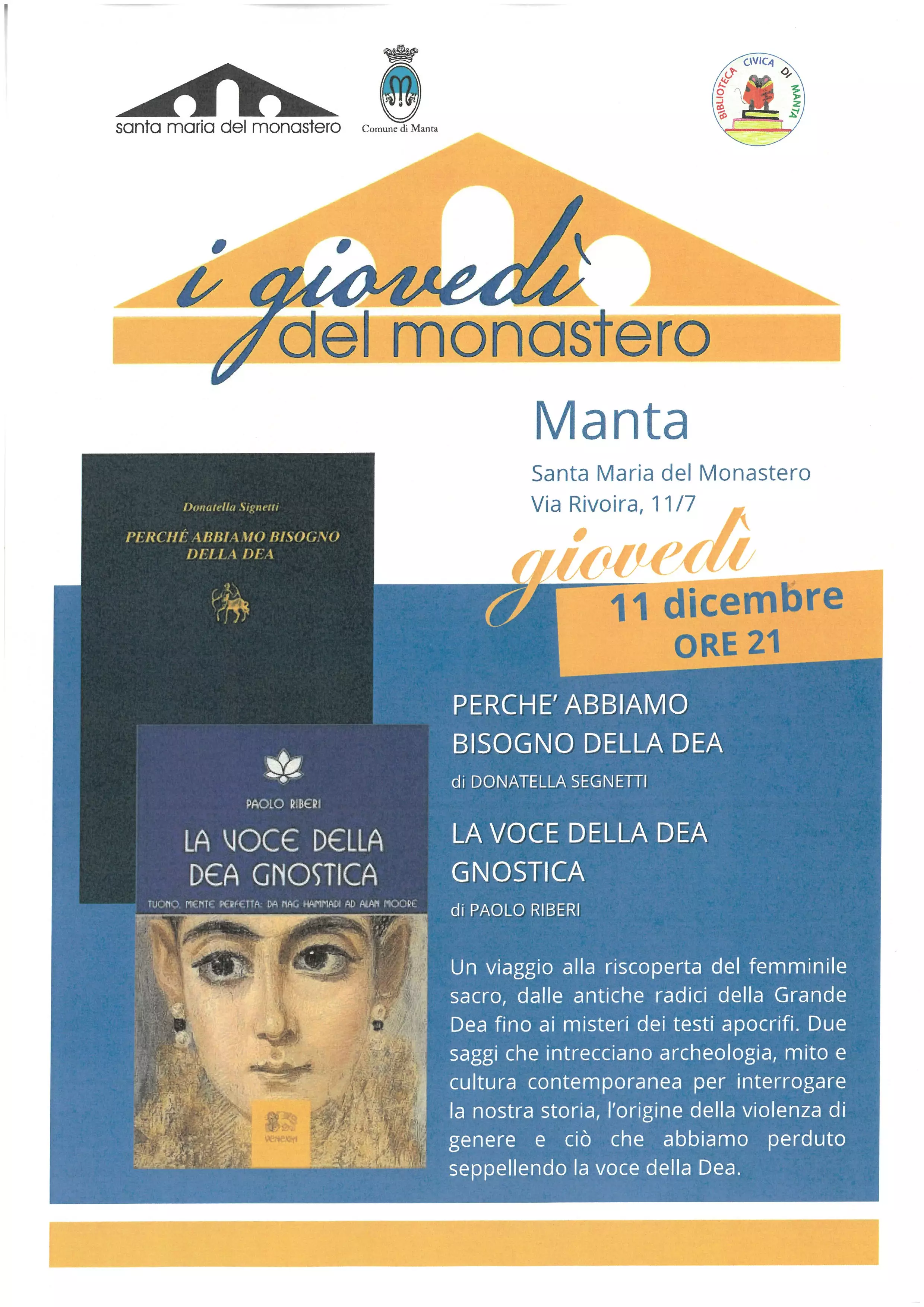 L'Amministrazione Comunale è lieta di invitare la cittadinanza alla doppia presentazione che si terrà giovedì 11 dicembre 2025 alle ore 21,00 presso il complesso di Santa Maria del Monastero